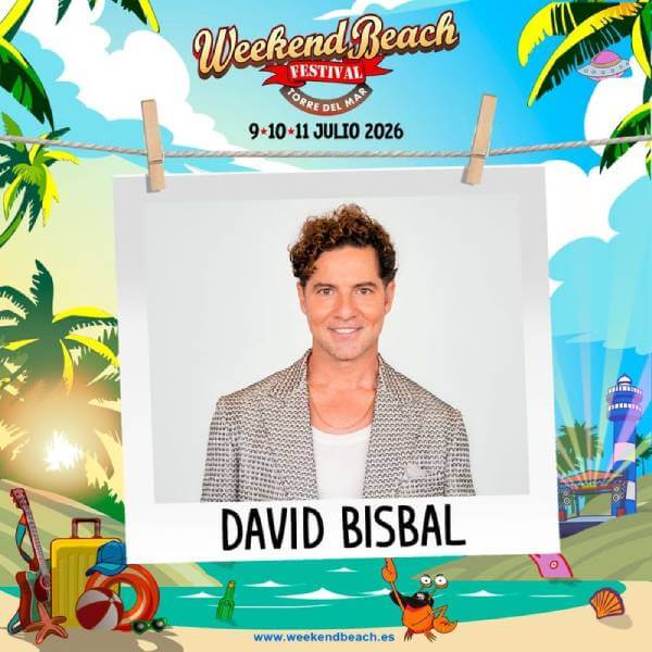 El cantante, compositor y actor David Bisbal confirmado como headliner en la próxima edición del malagueño Weekend Beach Festival. La misma tendrá lugar los días 9. 10 y 11 de julio en la Playa de Torre del Mar, siendo el único concierto que ofrecerá en la provincia en 2026 el artista almeriense dentro de su nueva gira.