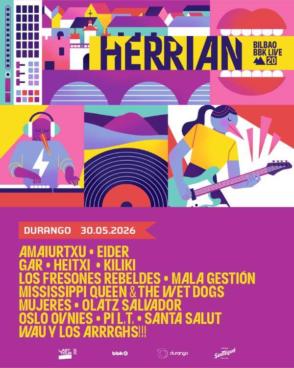 Los organizadores del evento Bilbao BBK Live anuncian la programación de la próxima edición de Herrian. La misma tendrá lugar el sábado 30 de mayo en Durango, sirviendo como antesala a los directos que tendrán lugar los días 9, 10 y 11 de julio en Kobetamendi (Bilbao) en la celebración de su 20 aniversario.