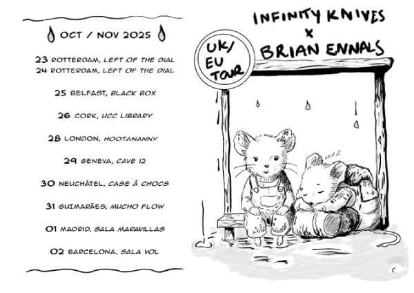 La dupla Infinity Knives & Brian Ennals estará actuando en directo en nuestro país el próximo mes de noviembre. Los conciertos tendrán lugar en Madrid (Maravillas) el sábado 1 dentro del ciclo MAZO Madriz y en Barcelona (VOL) el domingo 2 dentro de su particular gira por Reino Unido y Europa.