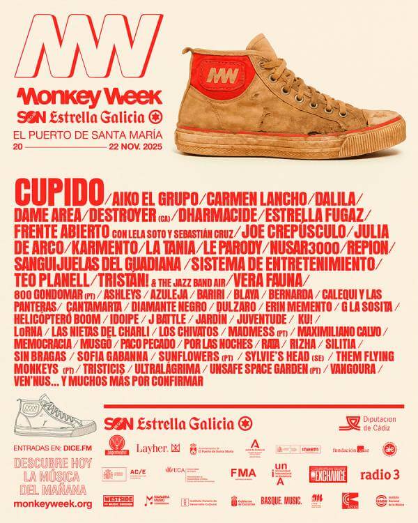 Los organizadores del evento Monkey Week SON Estrella Galicia incorporan nombres a la programación de su próxima edición. La misma se celebrará del 20 al 22 de noviembre en El Puerto de Santa María (Cádiz), en su apuesta un año más por descubrir hoy la música del mañana, siendo cita indiscutible para la industria musical.