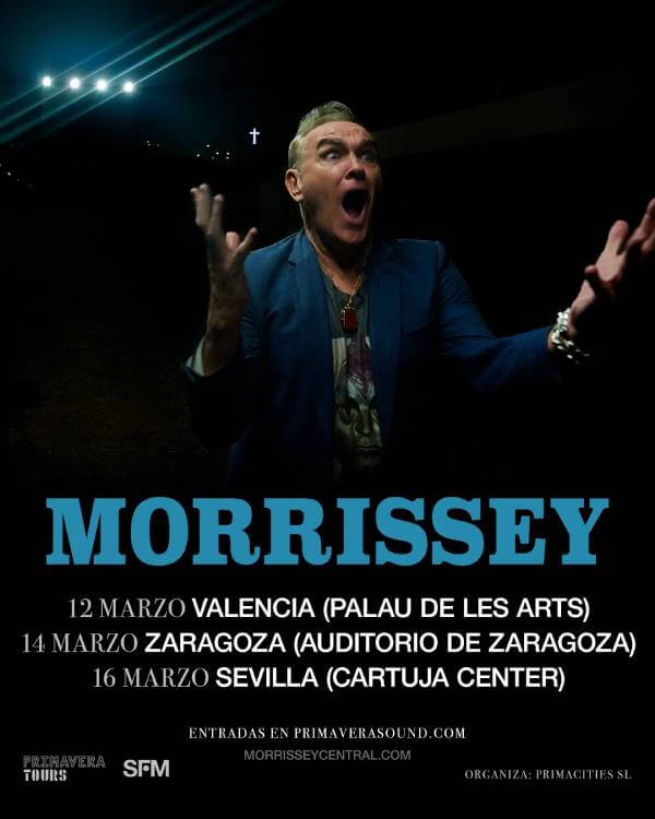 El cantante, compositor y autor Steven Patrick Morrissey, conocido artísticamente como Morrissey, anuncia conciertos en España. Los mismos tendrán lugar en Valencia (Palau de les Arts), Zaragoza (Auditorio de Zaragoza) y Sevilla (Cartuja Center) los días 12, 14 y 16 de marzo de 2026 dentro de su particular gira europea.